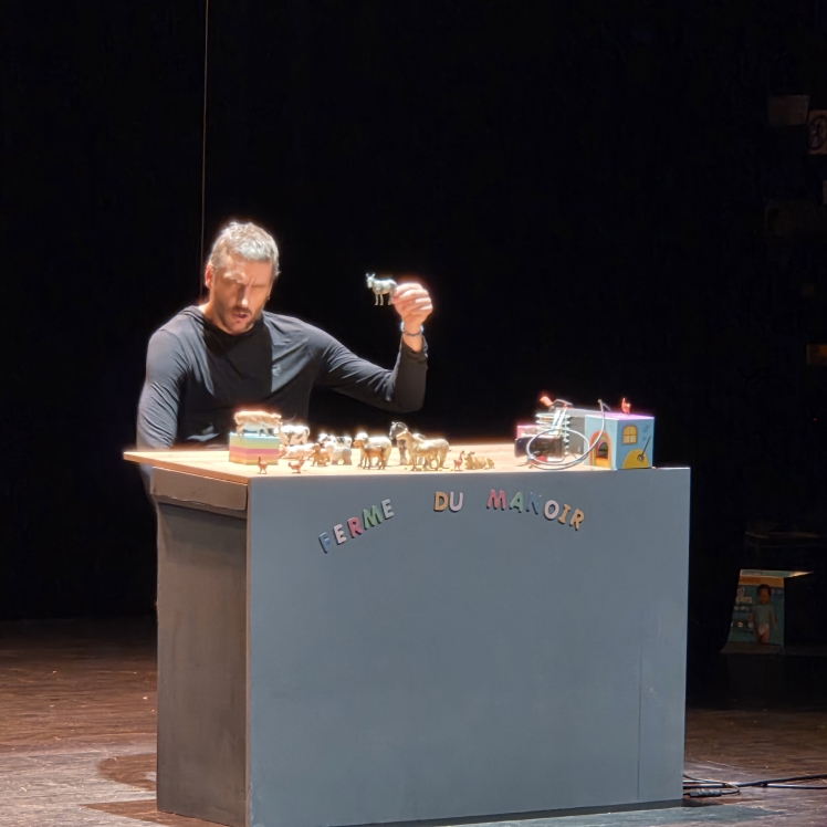 Seul sur scène, il interprète la révolte des animaux de la ferme contre leurs maîtres. Ils prennent le pouvoir et, après avoir chassé les hommes, tentent de vivre sans eux . . .