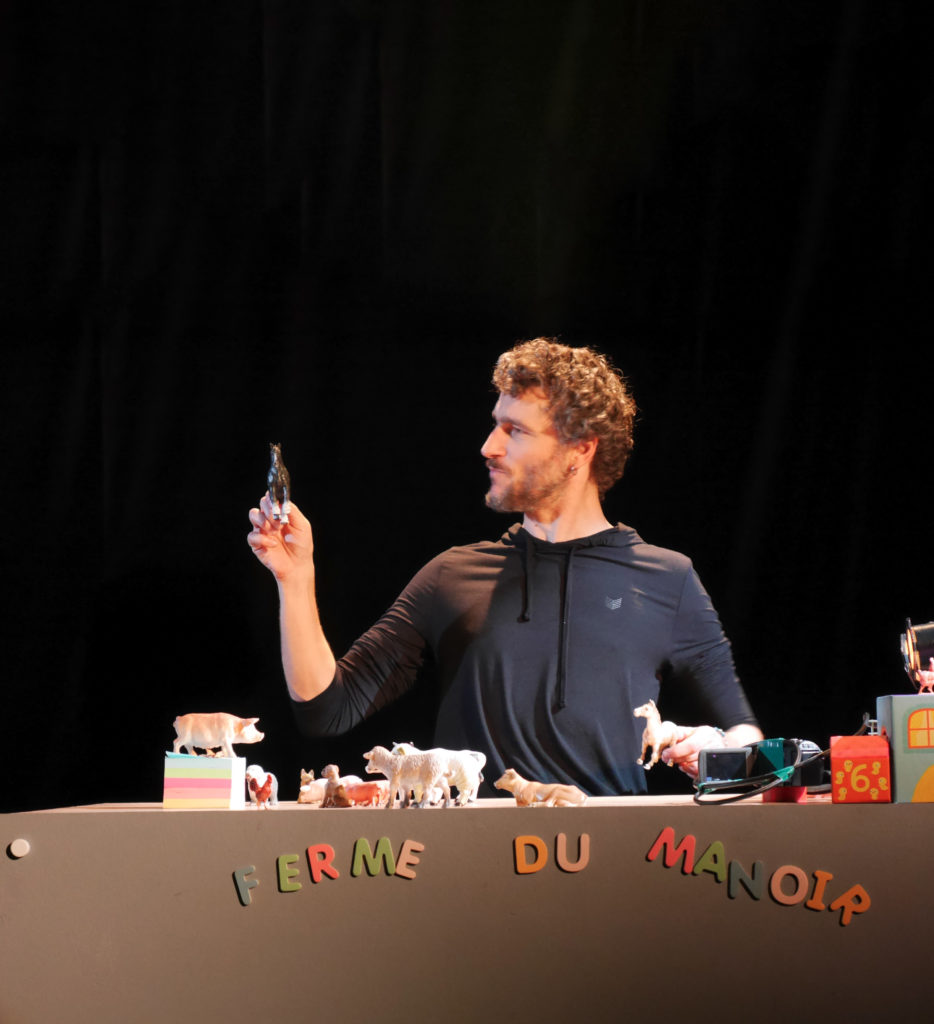 Spectacle de cinquante minutes qui adapte la célèbre histoire de la « Ferme des Animaux » au regard des plus jeunes. Dès 7 ans.