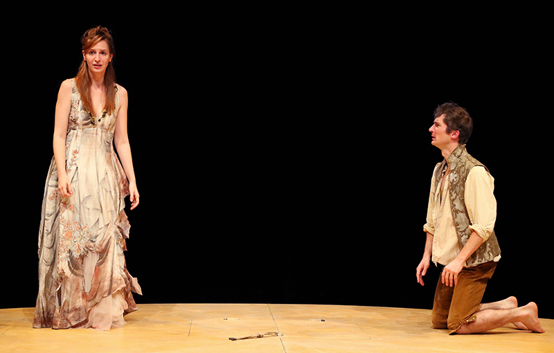 Gerold Schumann accentue l’aspect expérimental de la pièce en plaçant les quatre cobayes sur un podium circulaire. La bande des quatre fait preuve de la vitalité et de l’humour nécessaires, avec une mention particulière pour Claire Cahen en Cléanthis futée, sexy, insolente.